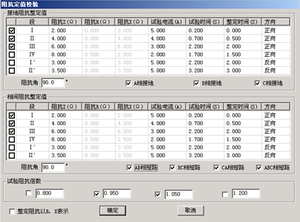 有四種試驗阻抗倍數供選擇,一般選0.95倍和1.05倍。0.95倍時,距離保護應可靠動作,1.05倍時,距離保護應可靠不動作。當微機繼電保護測試儀在這兩種倍數下保護動作不正確,請檢查0.8倍和1.2倍時保護的動作情況。短路阻抗 = 阻抗整定值×設定倍數。當然倍數值也可修改,以檢查保護在哪種倍數下動作正確。