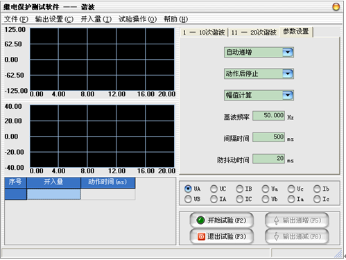 微機(jī)繼電保護(hù)測試儀幅值計(jì)算:各電壓、電流的各次諧波在界面上以“伏特”或“安培”為單位顯示其值,測試儀輸出的值為界面上實(shí)際顯示的電壓電流大小。